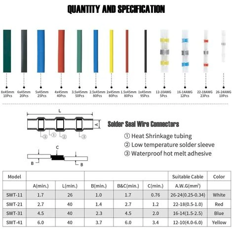 Kit de mèche thermorétractable 2 en 1 – Choix économique – Livré avec 480 tubes thermorétractables et 50 connecteurs à souder.