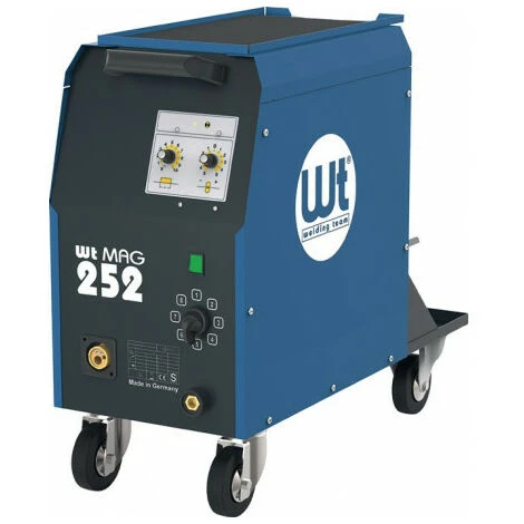 MIG/MAG mig/MAG installation de réparation de véhicules, d’atelier et d’agriculture · Avance de fil avec entraînement 4 rouleaux dentelés · Contrôle synchrone intégré La vitesse d’avance est automatiquement adaptée au niveau de commutation · equipé de soudage à points et d’un système d’automate en plein air · Tous les éléments de commande de cette installation compacte MIG/MAG sont toujours utilisables de manière optimale grâce à la conception en mã ©. avec 10 niveaux de commutation finement ajustés, interrupteur séparé et poignée pratique · Rangement d’outils à l’abri du caoutchouc Autres caractéristiques techniques : · Longueur : 760mm · Modes de fonctionnement : Points à 2 temps · Transmission : 4 boîtes de vitesses à rouleaux · Poids : 60kg · Type de protection : IP 21 · Protection (paresseuse): 16A · Type: Système compact · Hauteur : 665mm · Largeur : 325mm · Fil-Ø : 0,6 – 1,2mm · Mobilité: mobile · Prise de fil: S 200/B 300 · Courant maximal : 250A · Norme : EN 60974-1, -5, -10 · Procédé de soudage: MIG/MAG · 1000000000000000000000 Tension au ralenti : 18 – 39V · Tension du réseau : 400 V / 50/60 Hz · Consommation : 10kVA. Zone de courant de soudage: 25 – 250 A, Courant de soudage à 25% ED/40 °C: 220 A, Courant de soudage à 60% ED/40 °C: 140 A, Courant de soudage à 100 % ED/40 °C: 110 A, Nombre de niveaux de soudage: commutation progressive, 8 niveaux, Type de refroidissement: refroidissement au gaz, Version: sans accessoire, Marque: WELDING TEAM. Zone de courant de soudage: 25 – 250 A, Courant de soudage à 25% ED/40 °C: 220 A, Courant de soudage à 60% ED/40 °C: 140 A, Courant de soudage à 100 % ED/40 °C: 110 A, Nombre de niveaux de soudage: commutation progressive, 8 niveaux, Type de refroidissement: refroidissement au gaz, Version: sans accessoire, Marque: WELDING TEAM