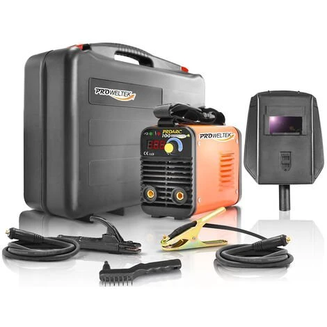Poste à souder électronique PROWELTEK SYNERGIC PROARC 100 MMA Ampères, équipé d’un convertisseur de puissance à onduleur de dernière technologie, avec alimentation 230V monophasée. Conçu pour le soudage MMA (soudage avec électrodes enrobées) Léger et compact, il est idéal pour toutes électrodes , Basiques, Rutiles, Fonte et Inox. Ses performances sont exceptionnelles, il soude en continu l?électrode 3.2 soit un facteur de marche à 100%.