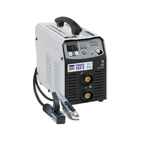 POSTE DE SOUDURE INVERTER À L’ÉLECTRODE ENROBÉE (MMA) 180 A Doté des dernières technologies électroniques et d’une conception robuste, le PROGYS 183 E assure des soudures professionnelles sur l’acier, la fonte et l’inox jusqu’à 10 mm d’épaisseur. Il est également pourvu de 3 procédés de soudage MMA, MMA Pulsé et TIG lift offrant des soudures du plus bel aspect de finition, grâce à sa fusion très douce. 3 MODES DE SOUDAGE MMA : Soude avec une grande facilité la plupart des électrodes enrobées : acier (rutile et basique), inox et fonte (jusqu’au 4.0 mm). MMA PULSE : Pour les soudures verticales montantes. TIG Lift : Pour les travaux minutieux sur tôles fines. AIDES AU SOUDAGE Hot Start (réglable) : Surintensité réglable à l’amorçage lorsque l’électrode vient en contact avec la pièce. Supprime les risques de collage lorsque l’électrode et la pièce sont froides. Arc Force : Fournit une surintensité en cas de besoin pour maintenir l’arc. Antisticking : Réduit les risques de collage de l’électrode en cas de contact avec la pièce. MMA Pulse (réglable) : Idéal en position de soudage verticale montante. Possibilité de régler la fréquence. TIG Lift (réglable) : Facilite le démarrage afin d’obtenir un cordon de soudure qualitatif. Un simple geste du poignet vers le haut déclenche le downslope automatique et la soudure se termine progressivement et proprement. SÉCURITÉS Refroidissement du poste optimisé avec protection thermique. Dispose de 2 vitesses de ventilation (fonctionnement / à vide). Protégé contre les surintensités. Compatible sur groupe électrogène. Composition: Poste à souder Progys 183 E Porte électrode 2m – 16 mm² Câble de masse 1.6m – 16 mm² Valise de transport Caractéristiques: Tension: 230 V Courant d’alimentation: 16 A Courant de soudage MMA: 10-180 A Courant de soudage TIG: 10-180A de baguette de soudure: 1.6 à 4 mm Epaisseur de soudage maxi: 10 mm Poids: 5 Kg Dimensions: Longueur: 14 cm Largeur: 18 cm Hauteur: 27 mm