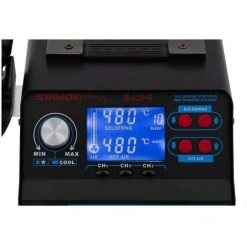 STAMOS Station De Soudage Dessoudage 75w LED SMD Kit Fer À Souder + Air Chaud + Alim. – Noir