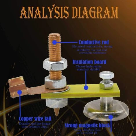 Le support de soudage magnétique se compose d’aimants, de plaques isolantes, de fer et d’acier inoxydable de haute qualité. La force d’attraction de l’aimant est de 3 kg et la délicate tige conductrice est stable et conductrice.