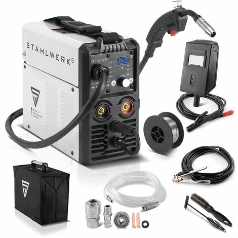 STAHLWERK MIG MAG 160 M IGBT – poste de soudage combiné 5 en 1 avec 160 ampères réels, fil fourré FLUX adapté, MIG MAG, Lift TIG avec MMA E-Hand, soudage possible sans gaz de protection, 7 ans de garantie constructeur.