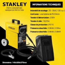Poste à Souder KING160 STANLEY FATMAX MMA + Cagoule Stanley Automatique 9/13 Facteur De Marche 100%