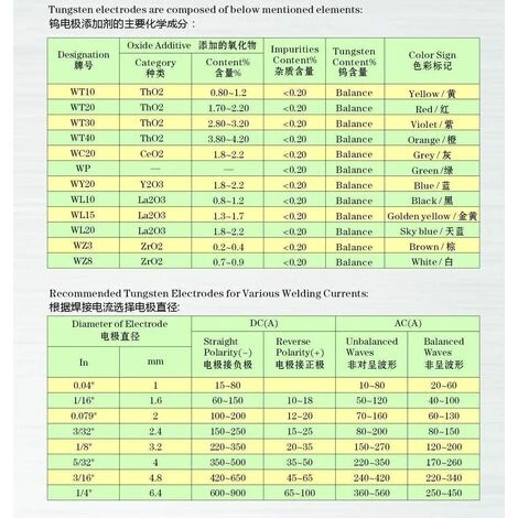 Électrodes de tungstène de thorium, qui a la forme la plus commune de tungstène utilisée aujourd’hui Excellente soudabilité et difficile à remplacer par d’autres électrodes en tungstène.